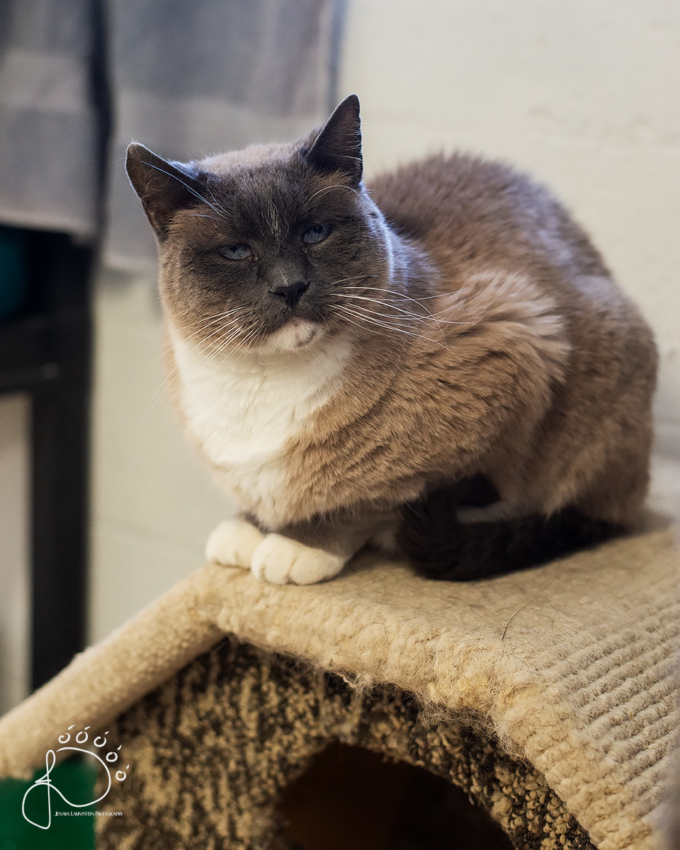 He is a neutered elderly gentleman looking for a warm lap and happy home with lots of love, a warm sunny window to snooze in and a quiet family to talk to.
